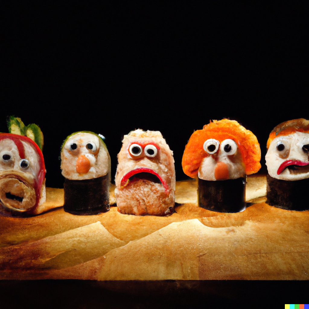 Sushi on Location This series of AI generated sushi described sushi acting out various movie scenes from iconic films. Familiar and not Familiar